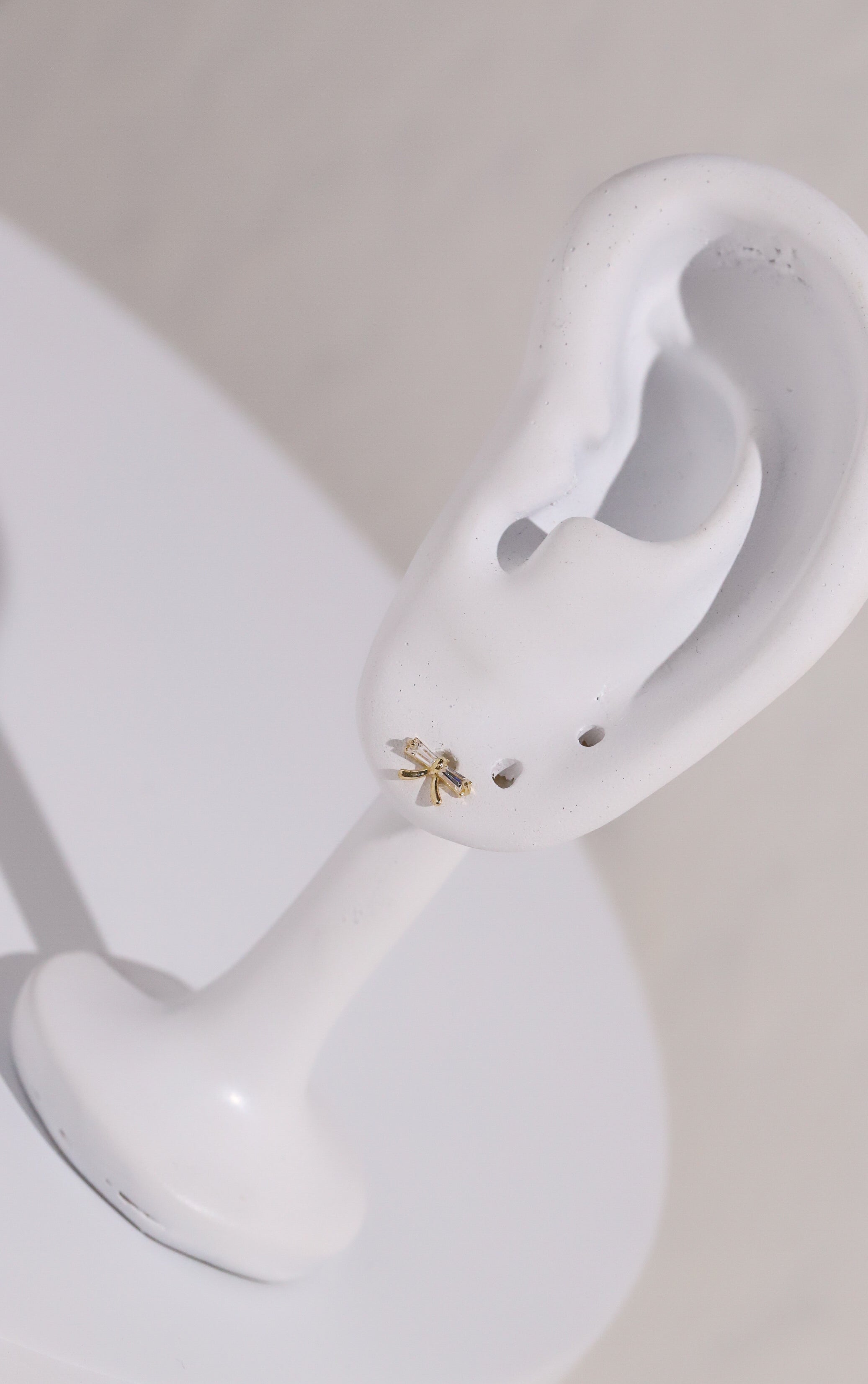 10K Gold Bow with Baguette Cubic Studs